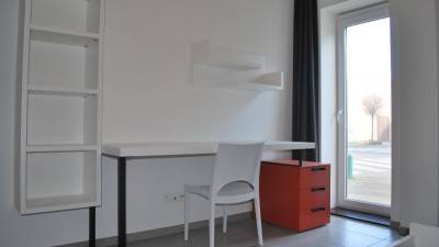 De kamer is voorzien van een lavabo, bed, bureau, stoel en kledingkast, en is geschikt voor één student. Gemeenschappelijke voorzieningen...